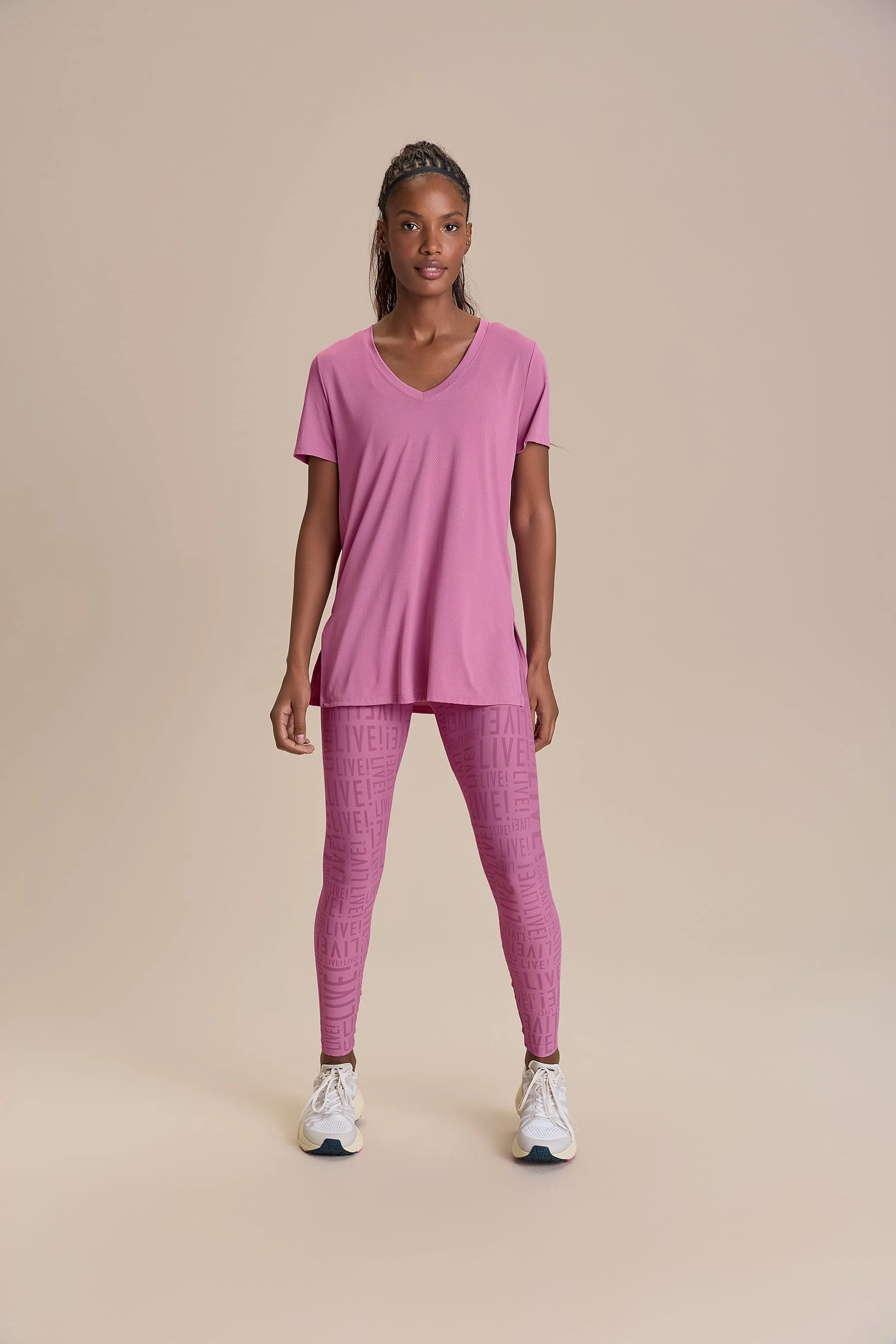 A lightweight training tee designed for comfort and freedom of movement. Featuring a V-neckline that visually elongates the neckline and side slits that add ease and style, this silhouette is relaxed and versatile for everyday workouts. The micro-perforated fabric delivers a fresh feel during activity, while easy-care performance keeps it practical for daily wear.