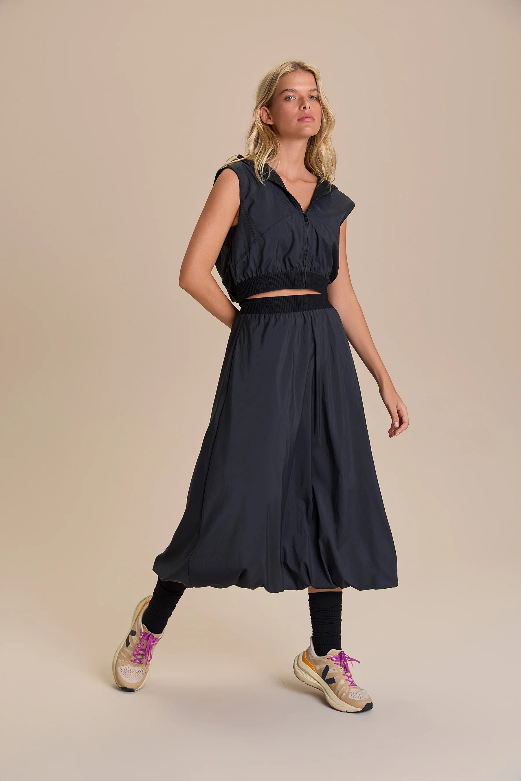 The Midi Balloon Skirt combines comfort and style in a modern, feminine design. The Signature LIVE! elastic waistband offers a comfortable, personalized fit, while the functional side pockets add practicality to the look. Its balloon cut enhances the silhouette, bringing fluidity and lightness to movement, perfect for creating versatile and sophisticated outfits.